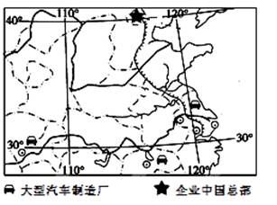 4、综合题 (20分)阅读美国某大型汽车制造企业迁移到中国城市的分布图(下图),回答有关问题。