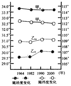 A、甲表示少数民族人口重心迁移,乙表示汉族人口重心迁移