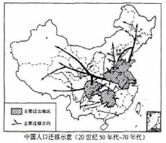 1、单选题 阅读我国20世纪50~70年代的人口迁移示意图,回答问题。