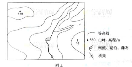2、单选题 图4示意某小区域地形,图中等高距为150米,瀑布的落差为83.5米,据此完成问题