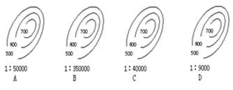 本题解析:等高距相同,图上距离相等,比例尺越大,坡度越陡。