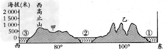 4、单选题 读沿20°N纬线所作的地形剖面图,回答1—2题。
