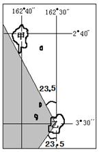 3、综合题 在太平洋中有甲乙两个小岛,岛上居民发现一年中有时甲的日出时刻较早,有时乙的日出时刻较早,有时同步日出。甲地比乙地日出时刻早的时间大约有一个月左右。(10分)