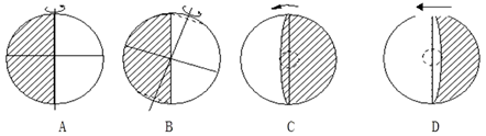 1、单选题 所给四幅图中,正确表示北半球冬至日昼夜分布状况的是(图中箭头表示地球自转的方向)