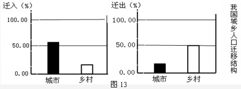 5、综合题 根据“2003年北京市与河南省人口增长指标”表和“我国城乡人口迁移结构图(图13)”,回答下列问题(8分)。