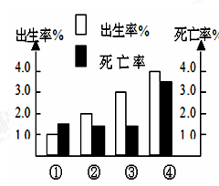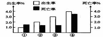 3、单选题 下图为高一某学生绘制的四个国家的人口出生率和死亡率柱状图,读图完成下列各题。