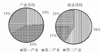 1、单选题 读我国某地区产业结构和就业结构图,完成问题。