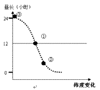 4、单选题 读下图“某日昼长随纬度(部分)的变化图”。完成下题。