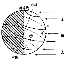 (3)昼半球和夜半球的________是晨昏线,晨昏线所在平面始终与太阳照射光线_________,晨昏线上