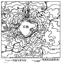 【小题1】由图可知,长白山天池大致呈圆形,是由四周高中间低的火山口积水而成。