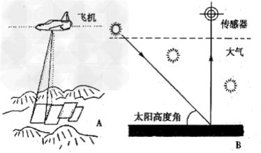 (2)在B 图中,传感器接受到的是地面反射或辐射的电磁波信息,在这个遥感过程中,传感器之所以能够对地面物体进行分辨,其原理是_________________________________。