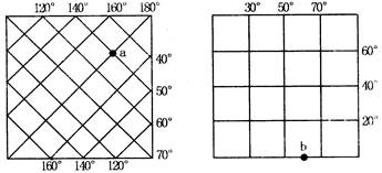 本题解析:1.本题考查地理位置的方位问题。 根据地理坐标a(180?,50 ?S),b(60 ?E,0 ?).所以b点在a点的西北。选择C项。
