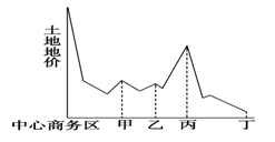 1、单选题 读“某城市地价空间分布示意图”,回答问题。