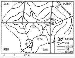 点评:本题难度一般,学生只要能结合图示的风向、河流流向进而判断工业区的位置,并结合环境因素判断高级住宅区和低级住宅区的内部分化。