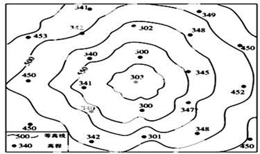 3、单选题 下图为某地区等高线分布图(单位:米),黑点代表在该地区钻探某页岩层的钻井位置,数据为各钻井该页岩层的顶部高程。