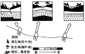 4、单选题 右图为我国某地区一条河流不同河段的X、Y、Z三处截面上的剖面图及其所在地区的典型植被分布图。据图回答8~10题。