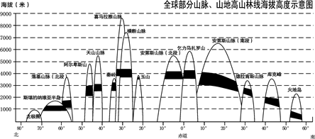 2、单选题 林线是指高海拔山地的森林分布上限,也就是高山林线。图为全球部分山脉、山地高山林线海拔高度示意图。读图,完成问题。