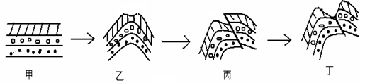 【小题3】根据图示,乙向丙的变化过程中发生了断层,属于内力作用,A错;任何地貌的形成都是内外力共同作用的结果,BC错;丙向丁转化过程中主要是侵蚀作用,属于外力,所以D对。