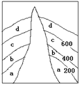 3、单选题 下图为等高线地形图,a处发现三叶虫化石,b处发现恐龙化石,c处发现古人类化石。判断该地区属于
