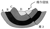 1、单选题 读“某地地质剖面图”,完成1—2题。