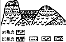 4、单选题 读下图某地质剖面图。图中抗风化侵蚀能力最强的是