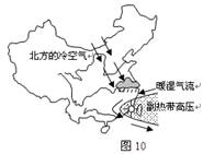 2、单选题 下图是某同学绘制的“副高对我国天气影响示意图”。读图回答问题。