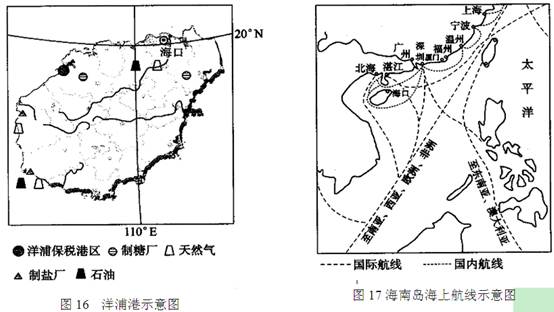 4、综合题 (8分)为了充分发挥海南省洋浦港的区位优势,我国将其设立为第四个保税港区。依托洋浦的产业基础,把洋浦建设成为具有一定国际竞争优势的石油化工基地、石油商业储备基地和“林一浆一纸”一体化产业基地。结合图文信息,回答下列问题。