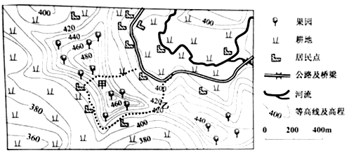 (3)甲:利:路程短,成本低;不利:但这条线路穿过的地形区地势陡峭,修路难度大,且易发生滑坡;乙:利:通过地区地形平坦,难度小;联系的居民点更多,经济价值更高;但路程较长,修路成本高