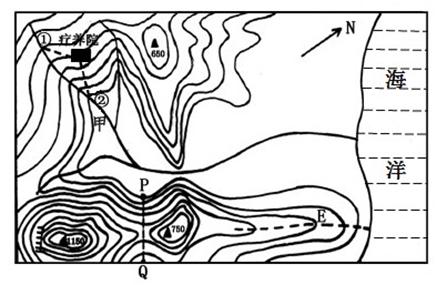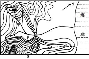 (5)画出图中P、Q之间的地形剖面图。(6分)