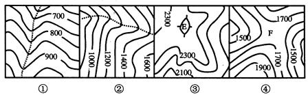 4、单选题 下图中虚线或字母表示地形部位。下列选项中,地形部位名称排序与图序相符的是