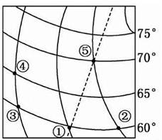 本题解析:1.由图中①点以西是东半球可知①点所在的经线为160°E,由①点与②③两点间的纬线距离是1 1lO km,计算①与②、①与③间的经度差为:111O/111·cos60°=20°,从而确定③点所在经线的经度为140°E,图中④点的经度也是140°E。