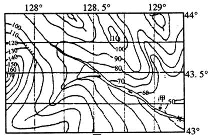【小题2】图中支流汇入干流处与甲点处的纬度和经度差分别约为( )