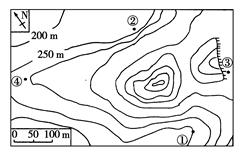 【小题1】结合等高线的分布规律可知,谷底和谷顶相隔三条等高线,每两条等高线之间的高差为10米,则谷底和谷顶的高差至少为20米。