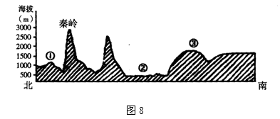3、单选题  图8为沿106.5°E我国局部地形剖面图,分析回答38—40题