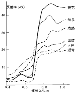 1、单选题 遥感技术在判断农业生产状况中的作用越来越大。下图为我国华北地区小麦在不同生长阶段(从下种、出苗、返青、扬花、结果到最终成熟为完整过程)测定的不同波段反射波谱特性曲线图。读图,回答1—2题。