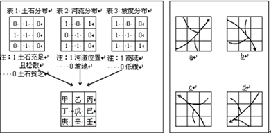 4、单选题 ? 某市泥石流易发生在下列三项条件都同时具备的地方:(1)河道;(2)陡坡;(3)大量松散土石分布。该市的地理信息经数字化后,处理分析得出表4,如图Ⅰ。读图I、Ⅱ,完成1—2题。