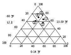 ⑥各少数民族人口占8.49%?⑦城市化比重69.68%2.图中①点表示2000年我国的年龄构成,则能反应我国2010年人口年龄构成的点是: