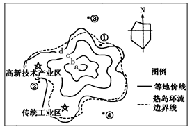 本题解析:1.由图可知,等地价线弯曲方向与交通通达度有关;从a到d依次分布有商业区、住宅区、工业区;d线附近为热力环流的边界线,应属于郊区;根据等地价线可以判断,城市主干道为环形—放射式道路。