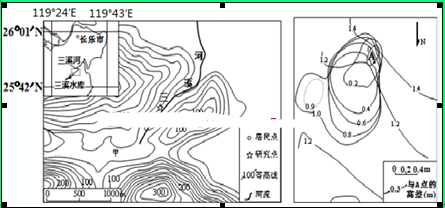 2、单选题 某高校地理系,组织学生到长乐市附近考察。左图是“学生考察地——长乐市三溪水库附近地区(图中左上方虚线框