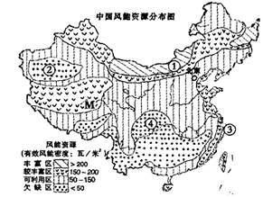 C.④地风能较贫乏是由于距海遥远? D.③地风能较丰富是由于地处沿海