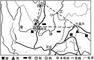 1、综合题 (28分)2012年2月,国务院正式批复同意《西部大开发“十二五”规划》,“攀西-六盘水”(攀枝花-西昌-六盘水)资源富集区成为国家规划的西部重点开发区之一。根据下列材料结合所学知识,回答下列问题。