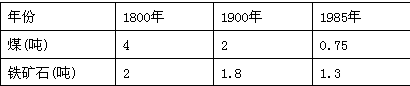 1、单选题 下表为世界钢铁工业发展过程中每炼1吨钢所需原料、燃料的变化资料。据表完成下列各题。