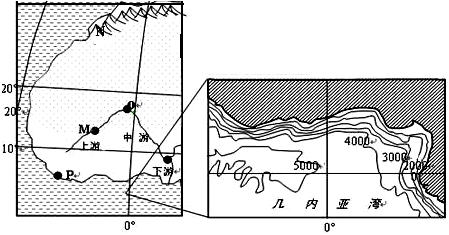 (1)描述几内亚湾海域等深线的典型特征。(4分)