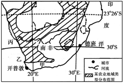 (3)南非不仅有“黄金宝石之国”的美誉,其渔业资源也比较丰富。试分析图中乙海域附近渔业资源丰富的原因以及该海域可能出现的环境问题。 (4分)