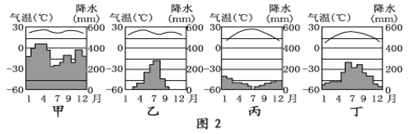 16.与图1中M点气候特点相匹配的气候数据资料是图2中的( )