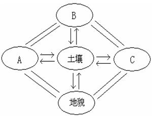 2、综合题 读陆地环境各要素间的相互关系图,回答问题: