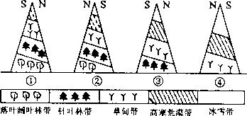 1.图中最有可能位于北半球的有2.山地同一自然带的分布高度两坡明显不一致,其形成的主导因素是