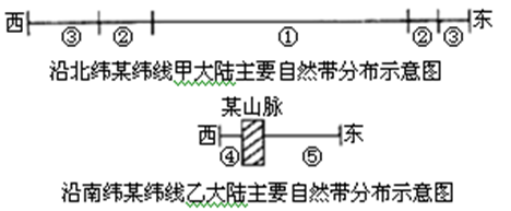 1.甲大陆东西两侧自然带相同,其中大陆东侧对应的气候类型是2.若图中经过乙大陆纬线与经过甲大陆纬线的纬度相当,则下列叙述正确的是