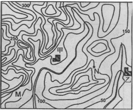 2.连接N点到甲村和乙村,图示甲村和N点之间有山脊阻隔;而N到乙村之间地形为山谷,故能看到乙村。