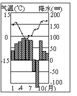 1、单选题 如图是甲、乙两地各月温度差和降水差(甲地各月气温减去乙地各月气温,甲地各月降水减去乙地各月降水)示意图,据此回答下题。
